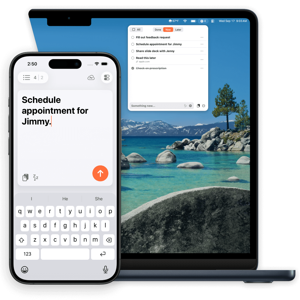 Capture and get back to what you were doing. No futzing about with which app, what folder, or what tags.